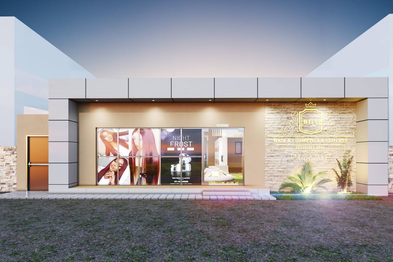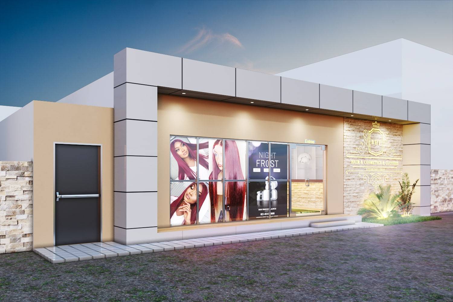 Il s’agissait pour ce projet de transformer une maison d’habitation en boutique de cosmétique avec salon de coiffure. Un design sobre et raffiné.