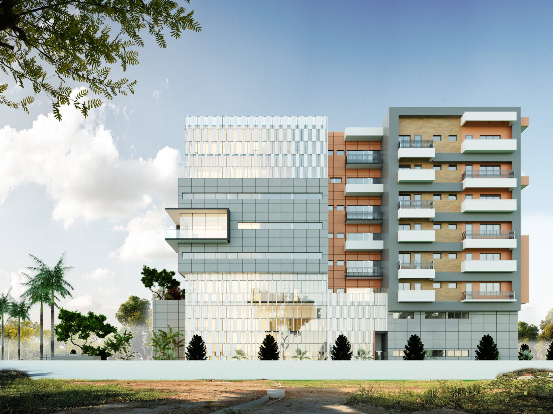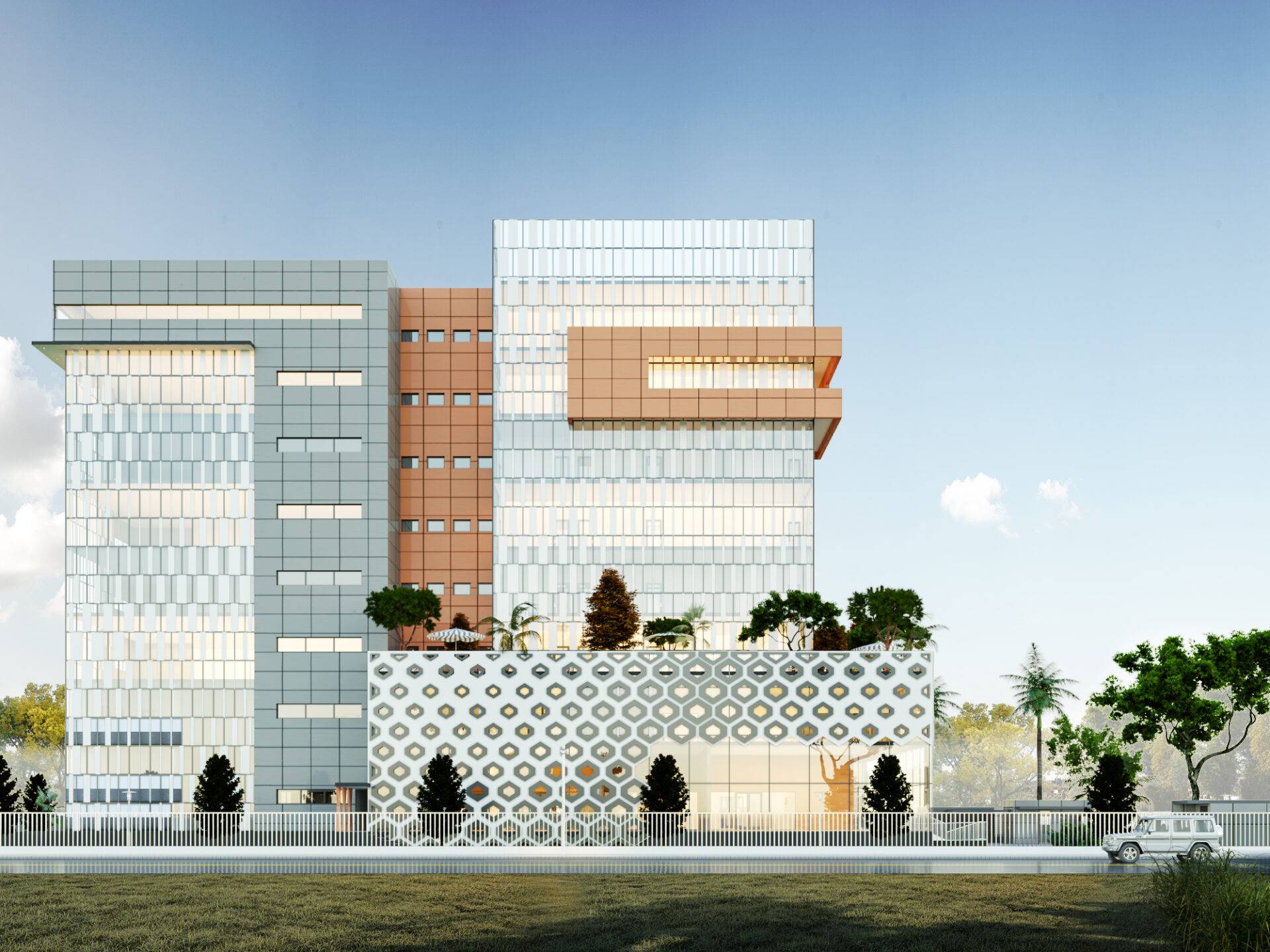 Né d’une collaboration avec l’agence SAD Architecture, ce projet se veut un pole administratif important de la ville. Son architecture à la fois rigoureuse et paramétrique symbolise l’élégance qui ne vieillit pas. Le bâtiment principal comporte en son sein un centre commercial, des plateaux de bureaux et des appartements. Le bâtiment intègre des systèmes de gestion énergétique intelligente, des panneaux solaires et des dispositifs de récupération des eaux pluviales, minimisant son empreinte écologique.