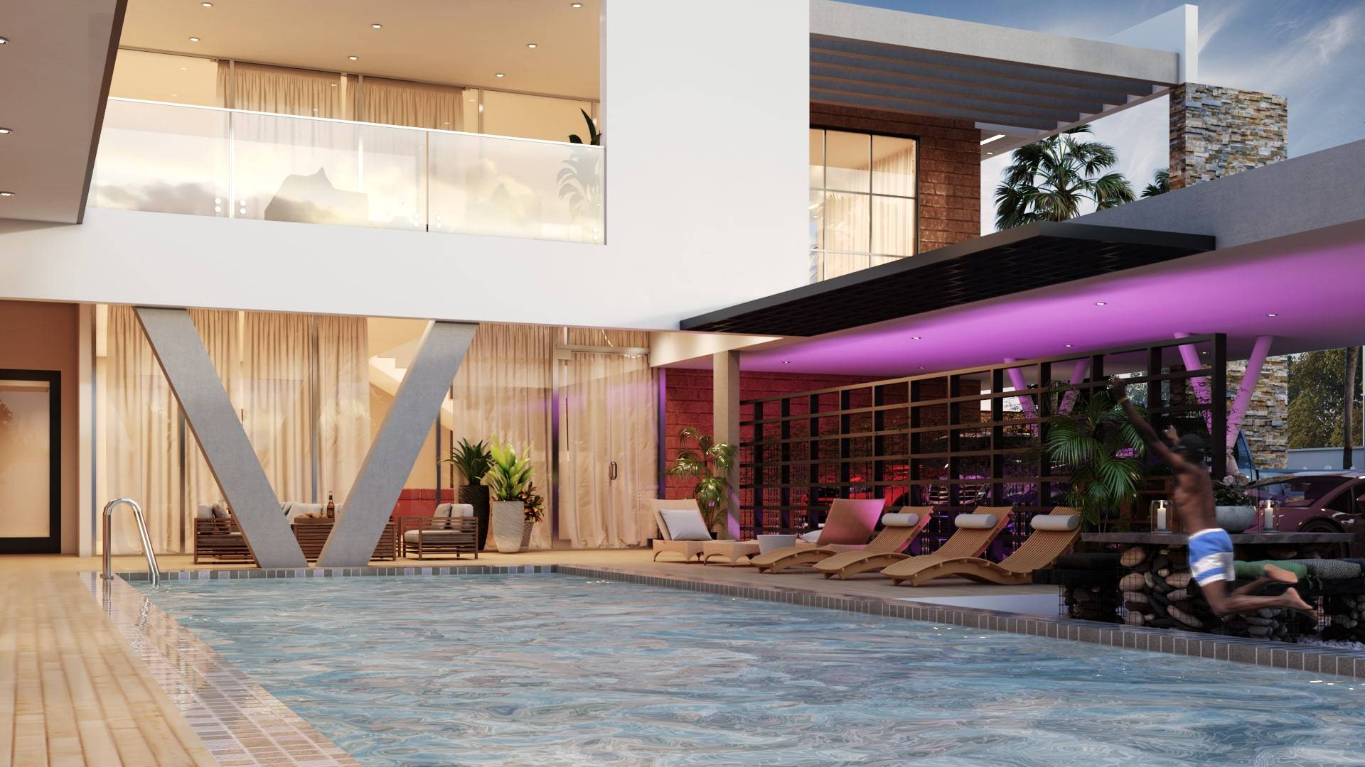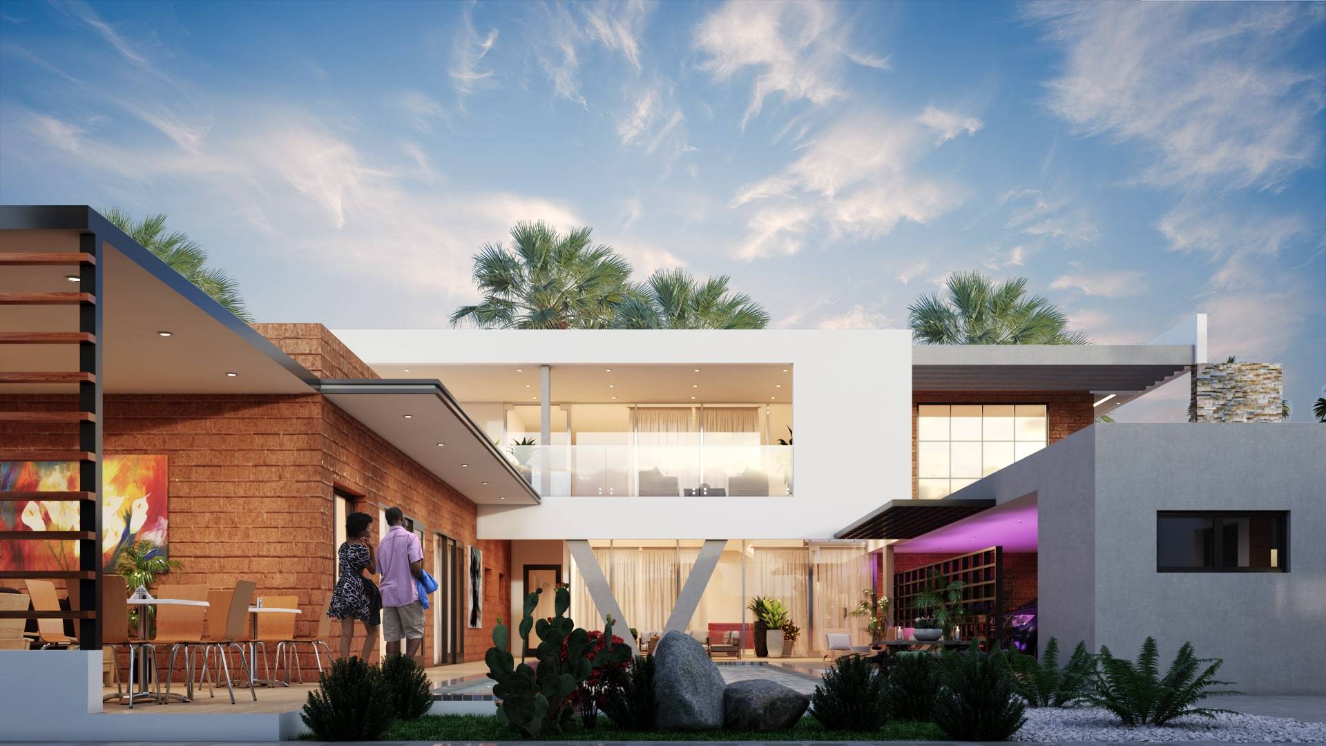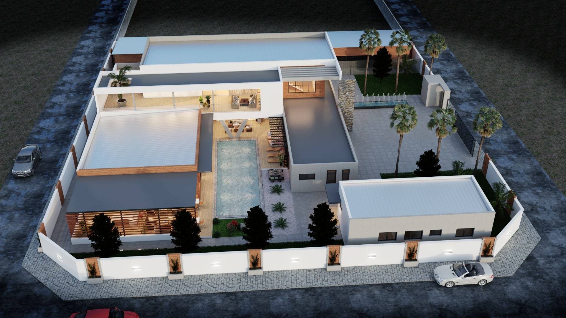 L’architecture de ce bâtiment s’inscrit dans un style de design contemporain souhaité par le client. Le duplex comporte 2 grands salons, une salle à manger, 2 cuisines, 4 grandes terrasses, une chambre principale, 3 chambres secondaires, un dressing, 6 salles de bain, 2 toilettes, un grand bureau, une grande piscine, un jacuzzi, des magasins et locaux techniques, un garage pour 4 véhicules et une guerite et un jardin. Il possède également 2 grandes dépendances dont l’une possède toutes les commodités d’un appartement F2 de haut standing.